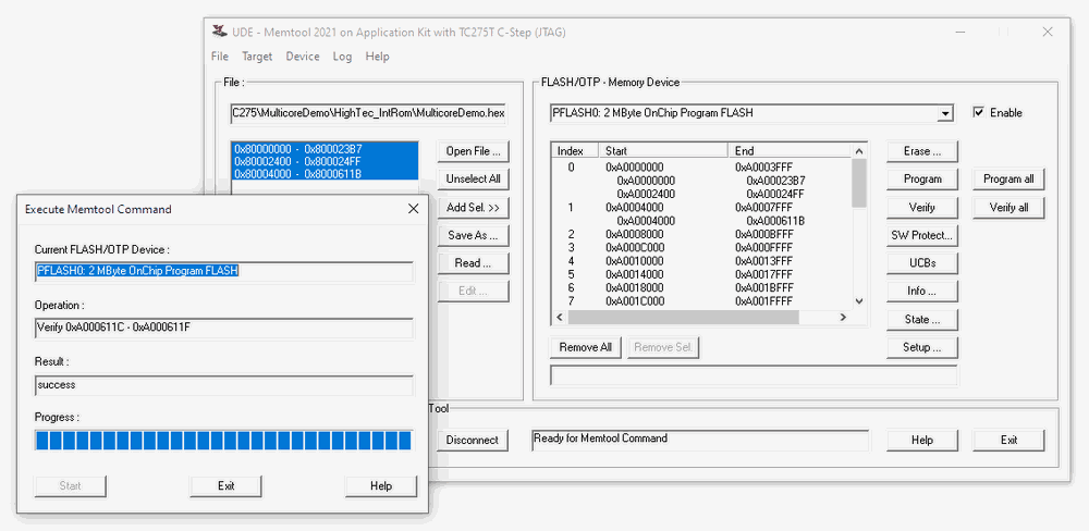 UDE MemTool Add-In .. is a part of the Universal Debug Engine (UDE) and allows the PCM / FLASH / OTP programming during the development cycle inside of UDE. UDE MemTool observes the download path and runs the programming process when requested.