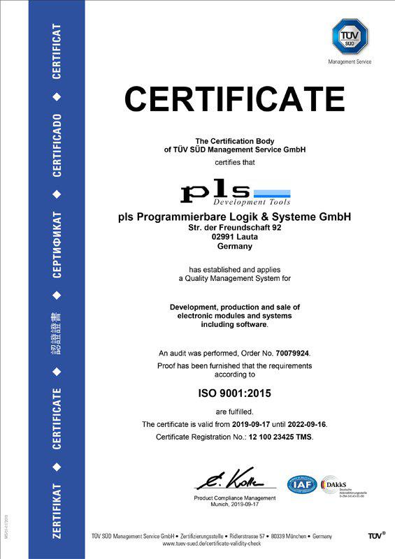 PLS has established and applies a Quality Management System for Development, production and sale of electronic modules and systems including software.